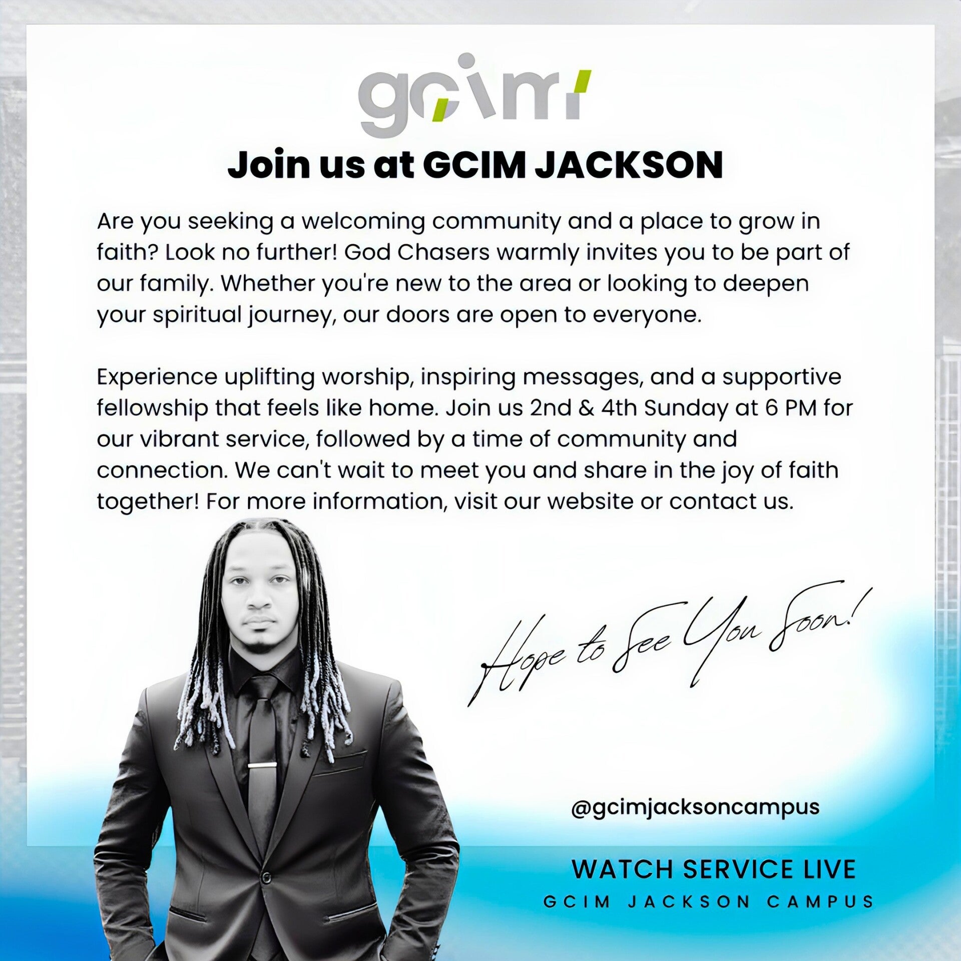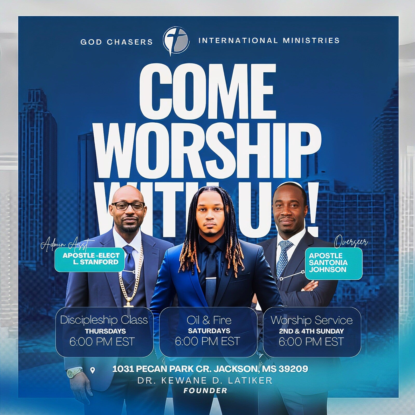Stay connected with God Chasers International Ministries by viewing our upcoming services and events. We welcome everyone to join us as we grow in faith and fellowship together. We're glad you're here to be a part of our story.